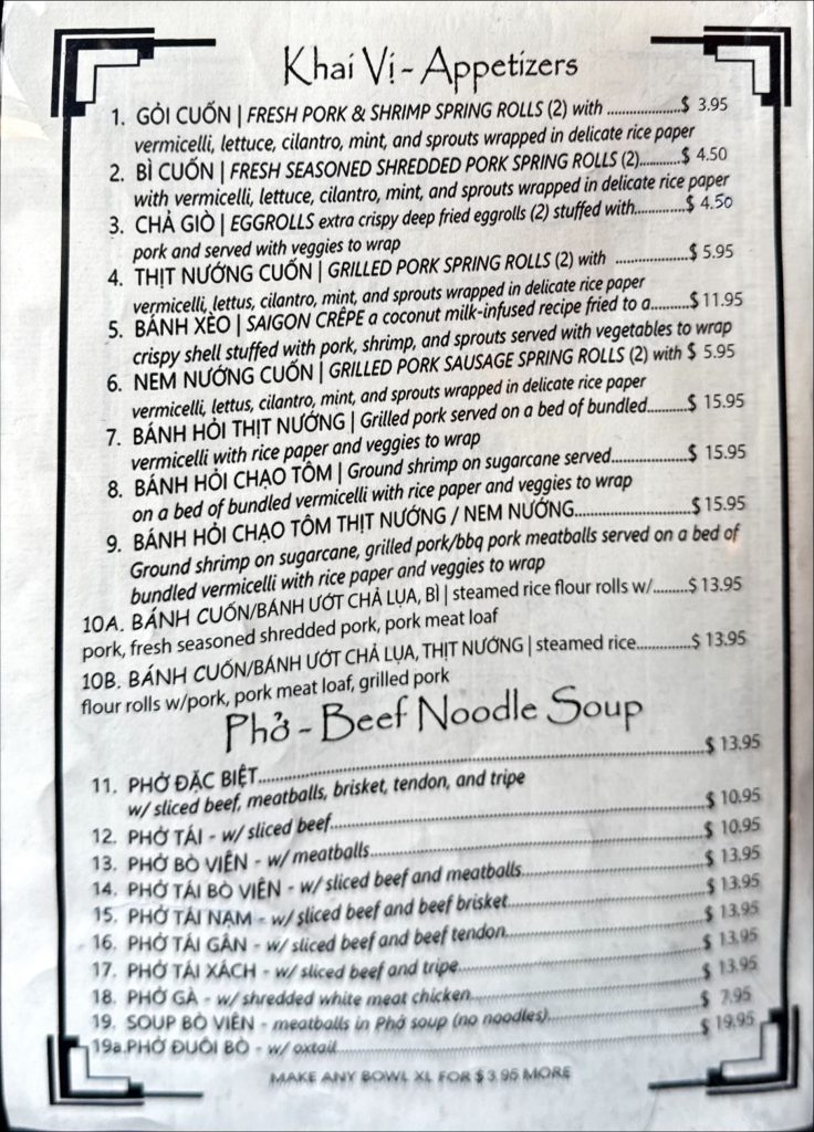 The menu at Pho Thanh Restaurant invites diners to explore a wide array of Vietnamese dishes, each meticulously crafted to highlight traditional flavors and ingredients. This diverse selection offers something for everyone, whether seeking familiar favorites or new culinary experiences. Pho Thanh’s menu includes several variations of pho, each designed to showcase the rich and aromatic broth that defines this classic Vietnamese dish. The beef pho, a restaurant favorite, is prepared with tender beef slices and garnished with fresh herbs and bean sprouts. In addition to pho, the menu features a selection of banh mi sandwiches, which blend Vietnamese and French influences. Each sandwich is served in a crispy baguette and filled with ingredients like marinated pork and pickled vegetables, offering a delightful contrast of flavors and textures. By exploring the menu at Pho Thanh, diners can experience a range of traditional Vietnamese dishes, each prepared with a focus on authenticity and taste. The variety offered ensures that every visit to the restaurant provides a new and enjoyable culinary experience.